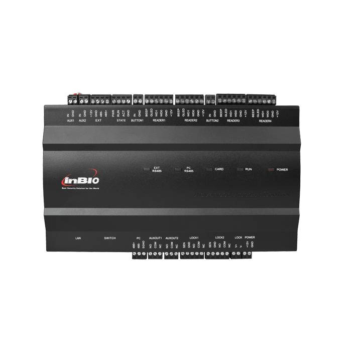 - Pengontrol InBio hadir dalam tiga ukuran agar sesuai dengan kebutuhan proyek dan mengurangi biaya kapasitas yang tidak terpakai. Model 1 pintu, 2 pintu, dan 4 pintu dapat dicampur dan disesuaikan dengan arsitektur sistem yang optimal. Anti-Passback, Pembukaan First-Card, Pembukaan Multi-Card, Entri Tanpa Awess Password, dan Auxilary Input / Output Linkage dibangun pada firmware controller.